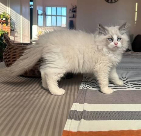 We have 1 male ragdoll kitten available and he is just stunning as you can see. He’s also very confident and playful! Purebred and litter trained! He is 12 weeks old with shots and deworm up to date, FeLV tested, vet certification provided upon adoption. Parents are here with us as well.