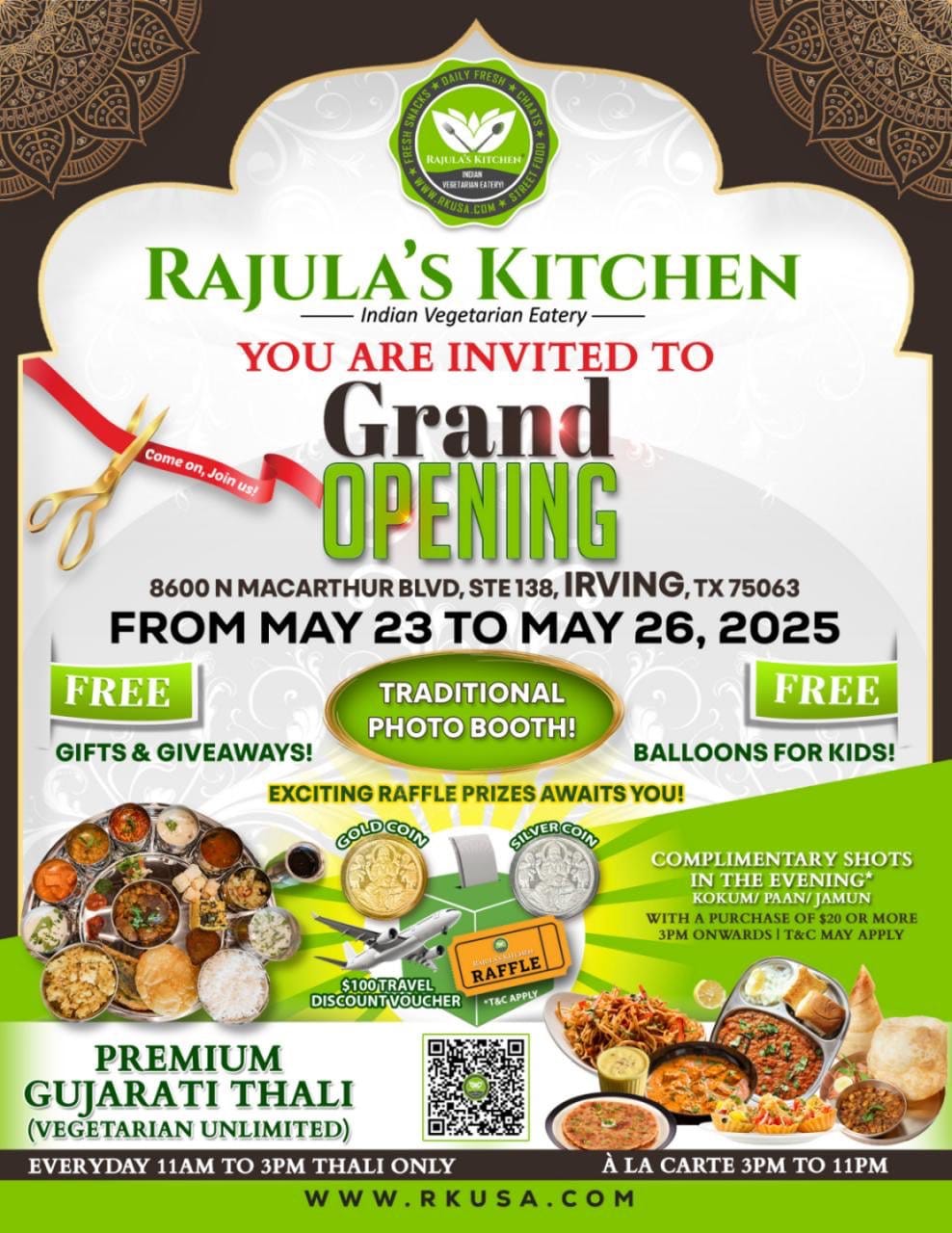 Rajula’s Kitchen Grand Opening – Free Gifts, Raffle Prizes, Unlimited Gujarati Thali & More in Irving, TX