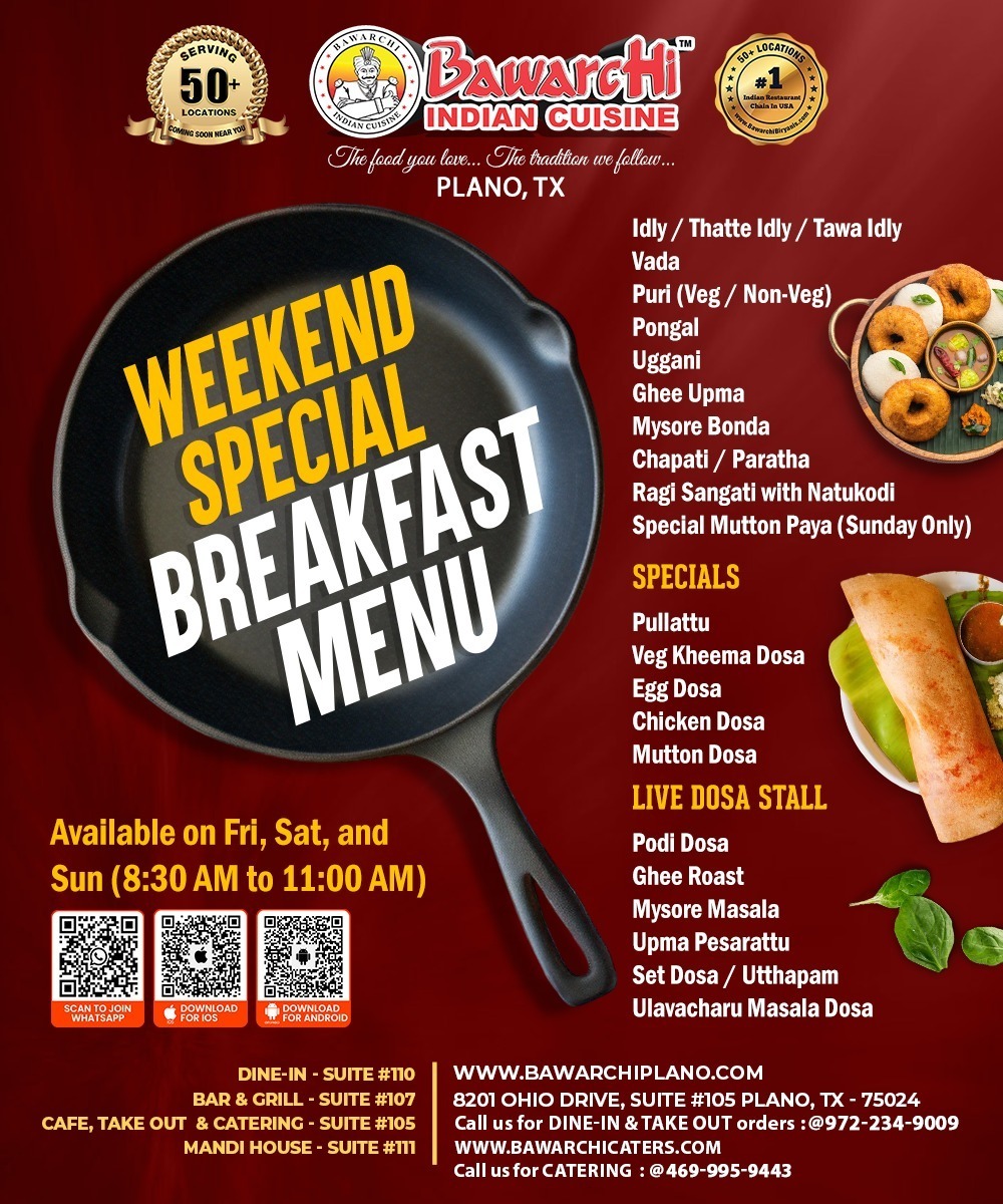 Bawarchi Indian Cuisine Plano – Weekend Special South Indian Breakfast with Live Dosa Counter