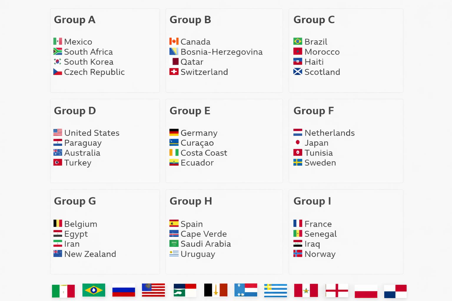 he lineup for the 2026 FIFA World Cup is now complete, marking a historic expansion to 48 teams for the first time. The tournament will take place across the United States, Canada, and Mexico from Thursday, June 11, 2026, to Sunday, July 19, 2026.