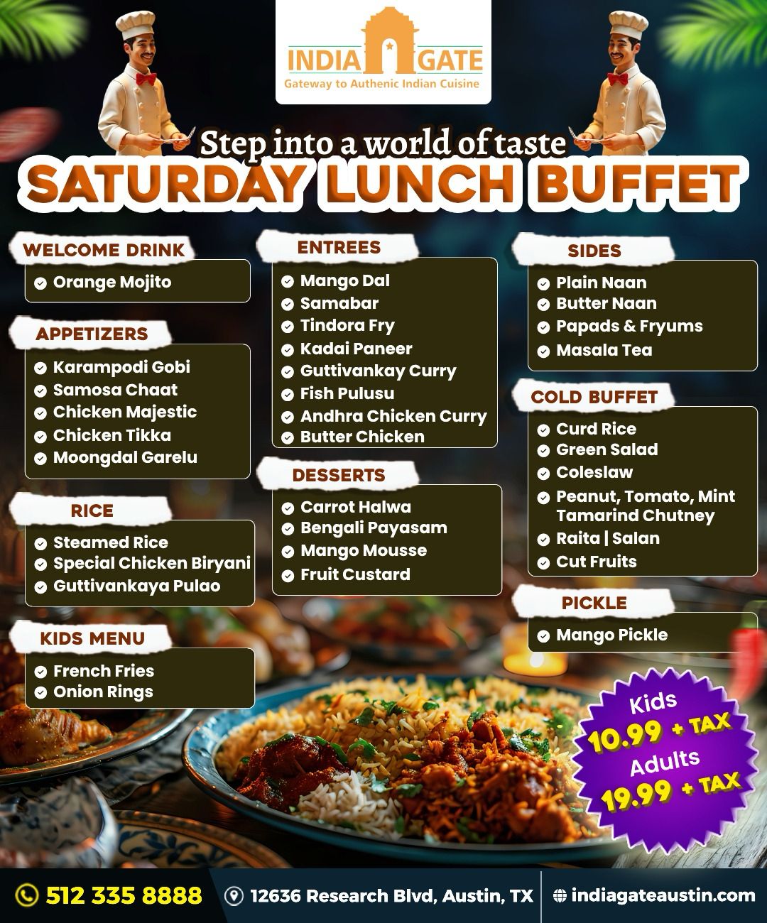Kids: $10.99 + tax