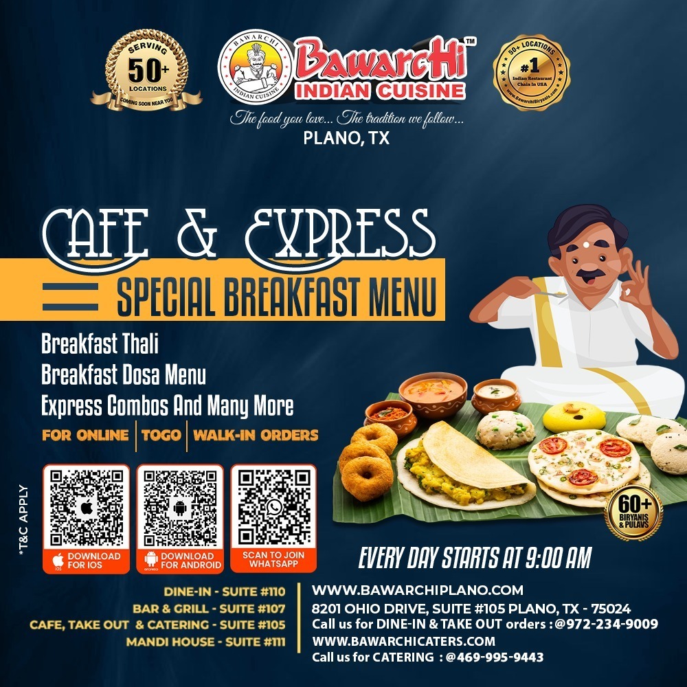Special Breakfast Deal at Bawarchi Indian Cuisine – Plano, TX!