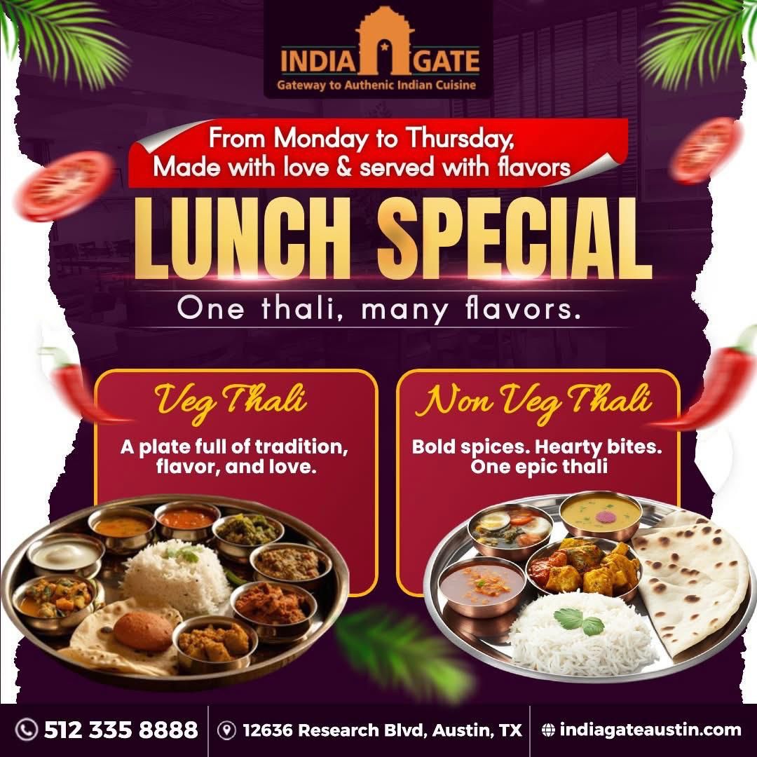Lunch Special at India Gate – One Thali, Many Flavors!