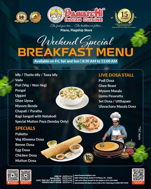 Bawarchi Indian Cuisine – Weekend Special Breakfast Menu in Plano, TX