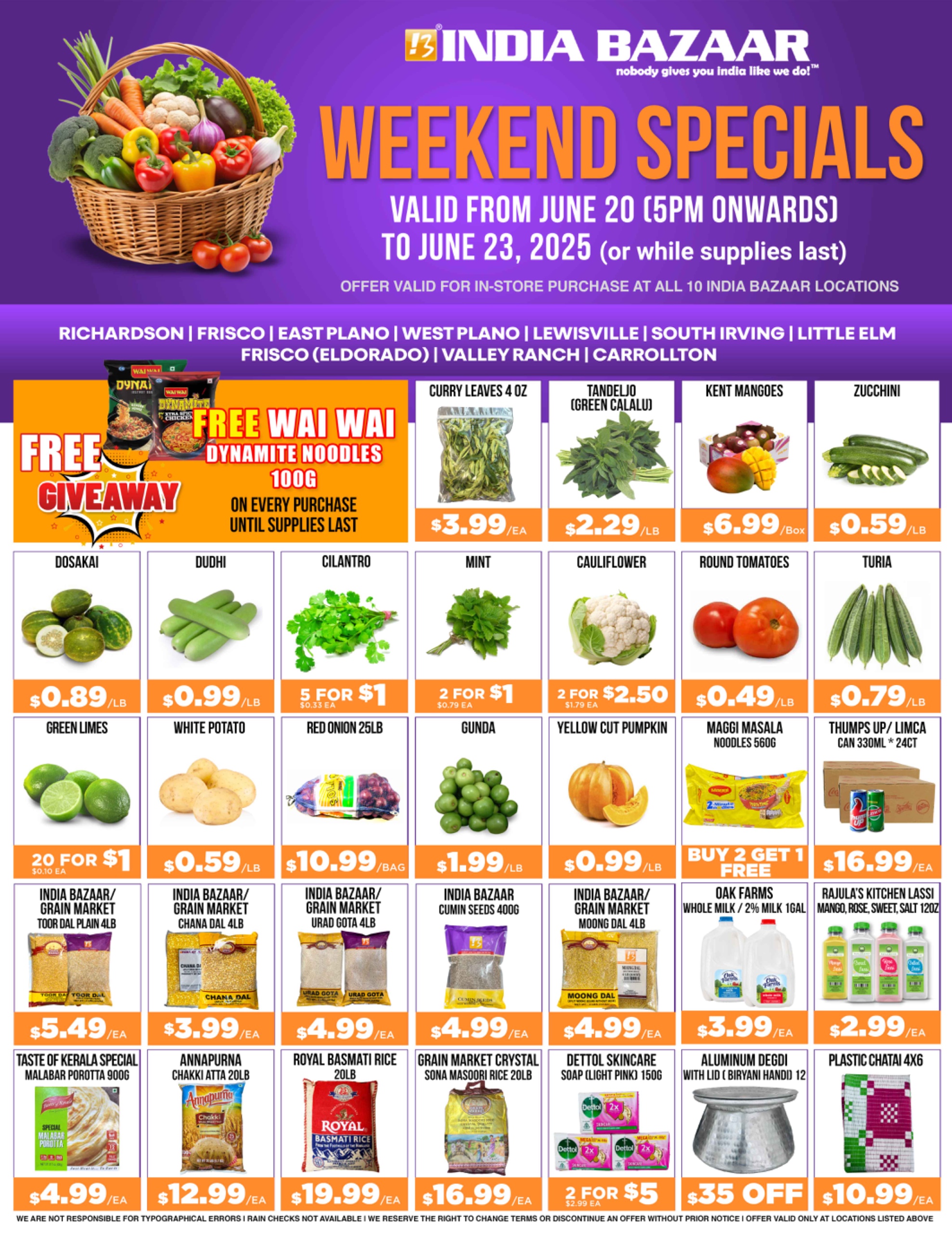 Get ready to stock up and save with India Bazaar’s exclusive Weekend Specials! From fresh farm-picked vegetables to premium-quality grains and pantry staples, we bring you the best of Indian groceries at unbeatable prices.