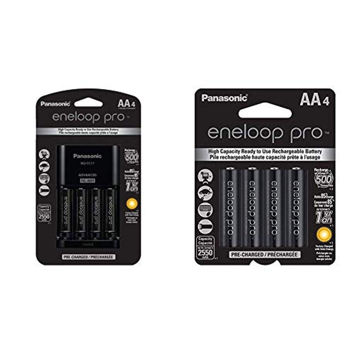 Panasonic eneloop pro Charger w/ 4-Pack 2500mAH AA Batteries + Extra 4-Pk Pro AA