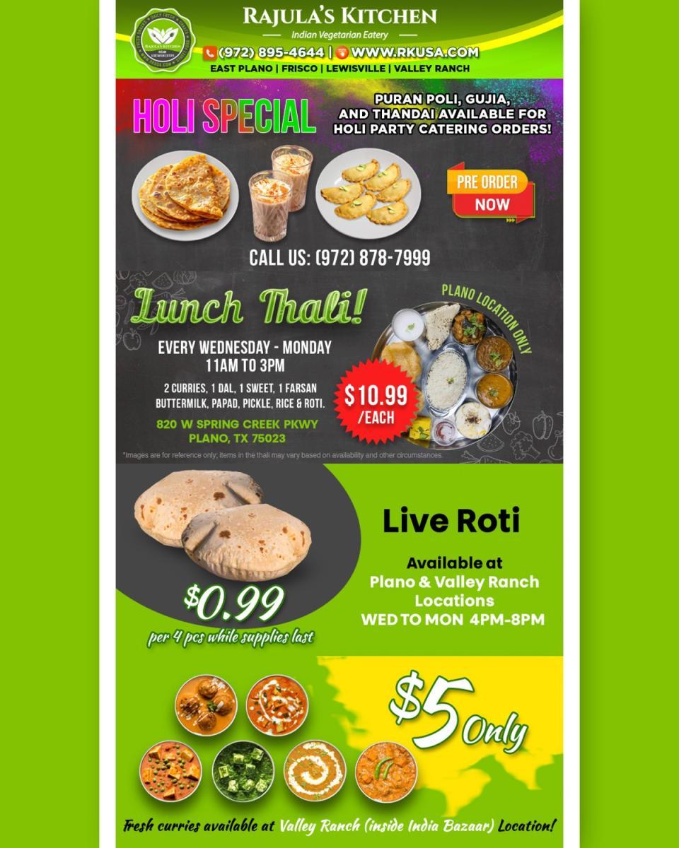 Rajula’s Kitchen Holi Special – Festive Deals on Thali, Sweets, and Live Roti