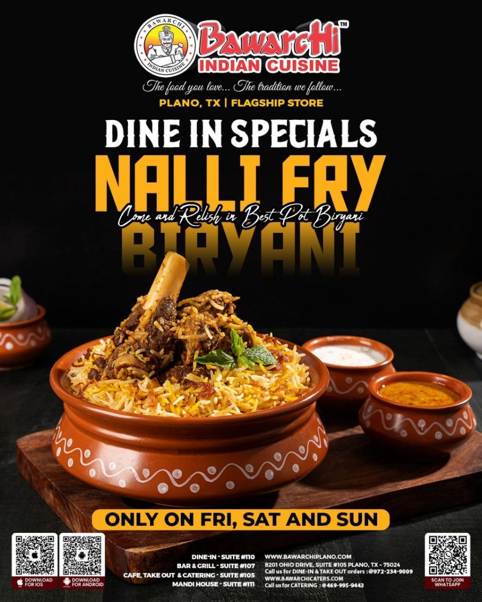 Bawarchi Plano Nalli Fry Biryani Dine-In Special – Authentic Weekend Pot Biryani in Texas