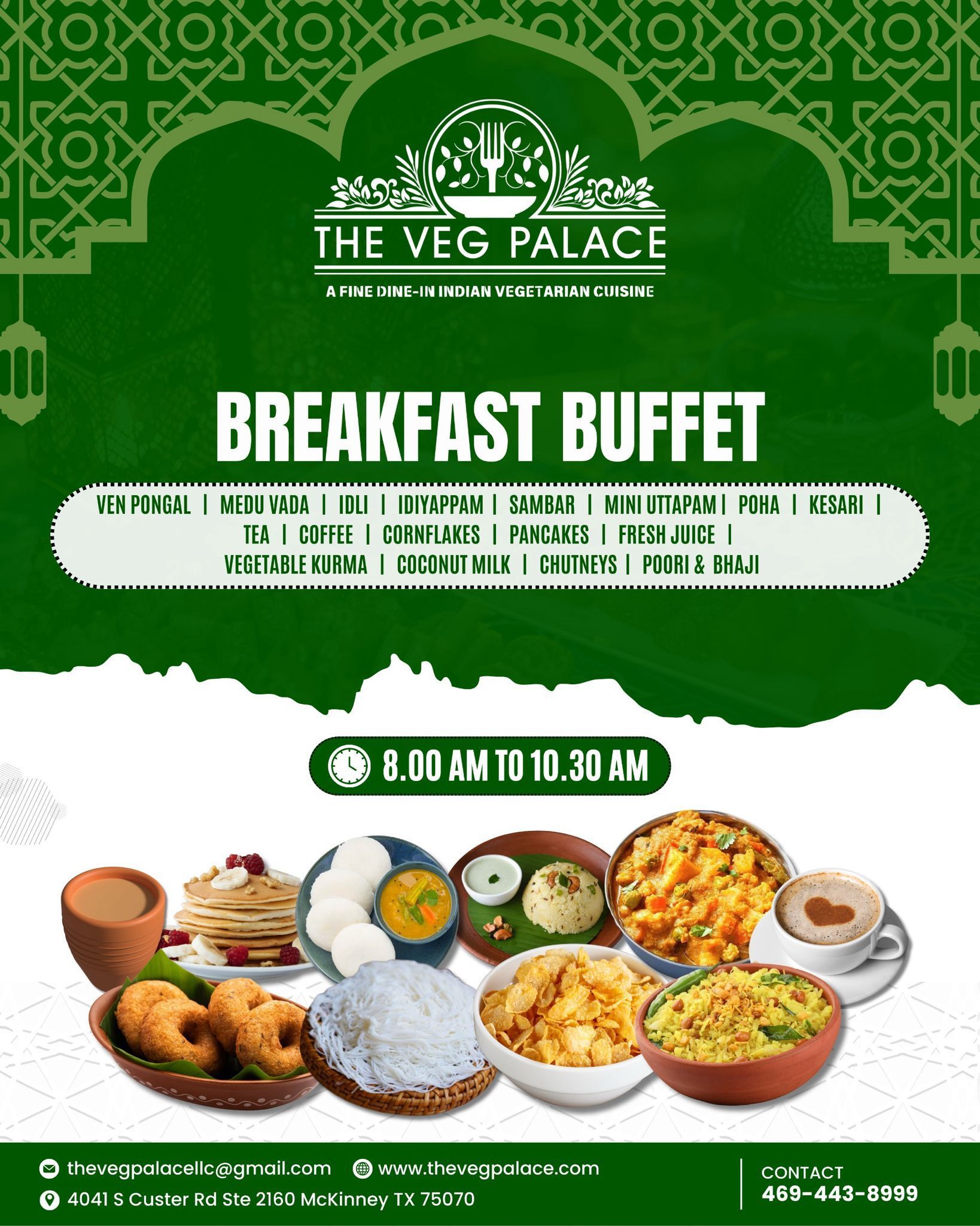Start your morning right with our wholesome and flavorful all-vegetarian breakfast buffet!