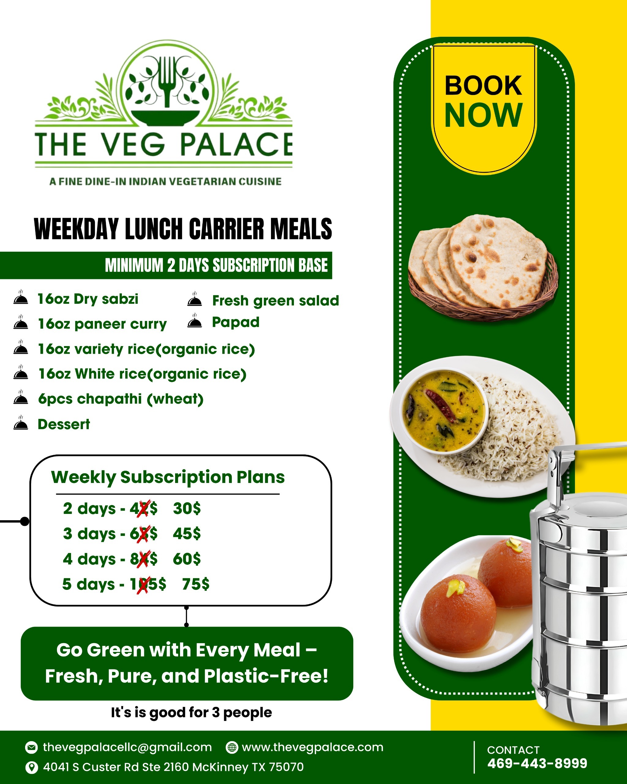 The Veg Palace Daily Lunch Box – Pure Veg Carrier Meals with Subscription Plans in McKinney