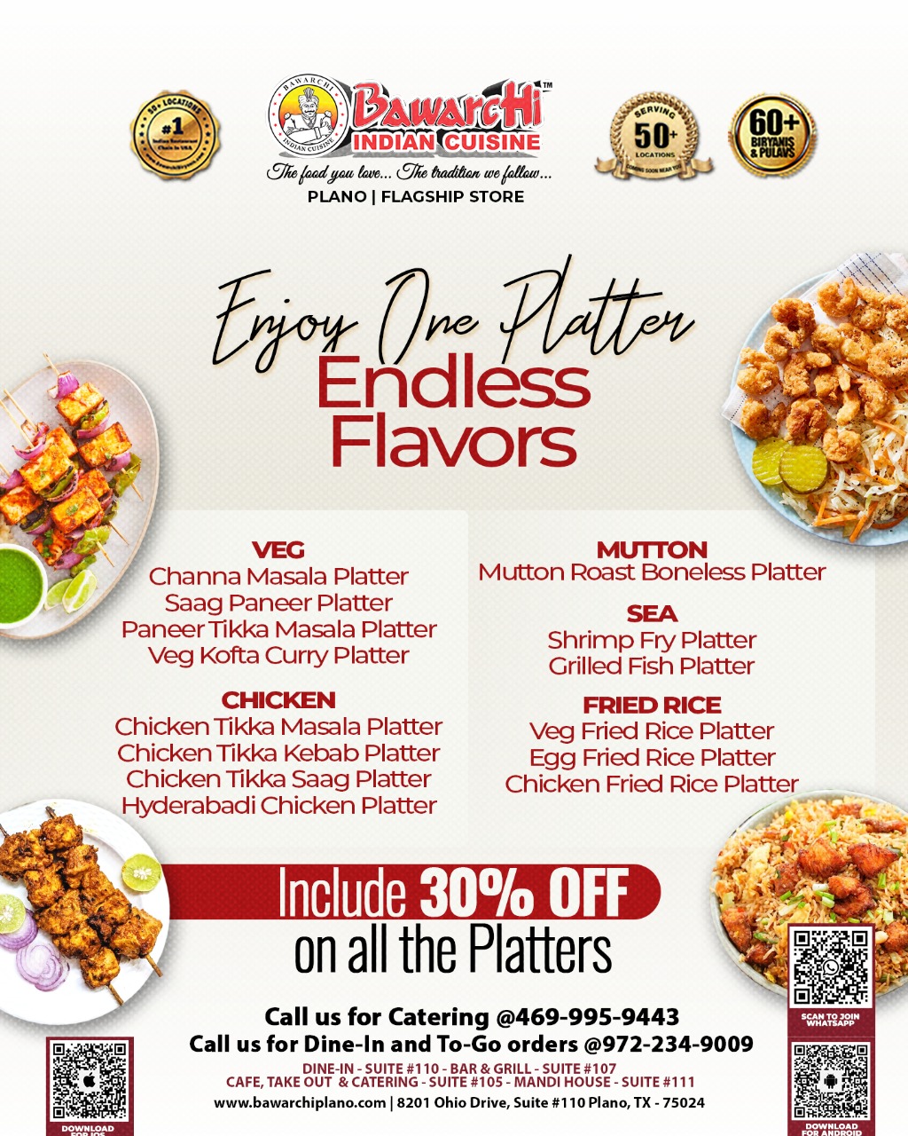 Craving variety? Satisfy your appetite with our flavor-packed platters featuring your favorite Indian dishes — now with 30% OFF on all platters!