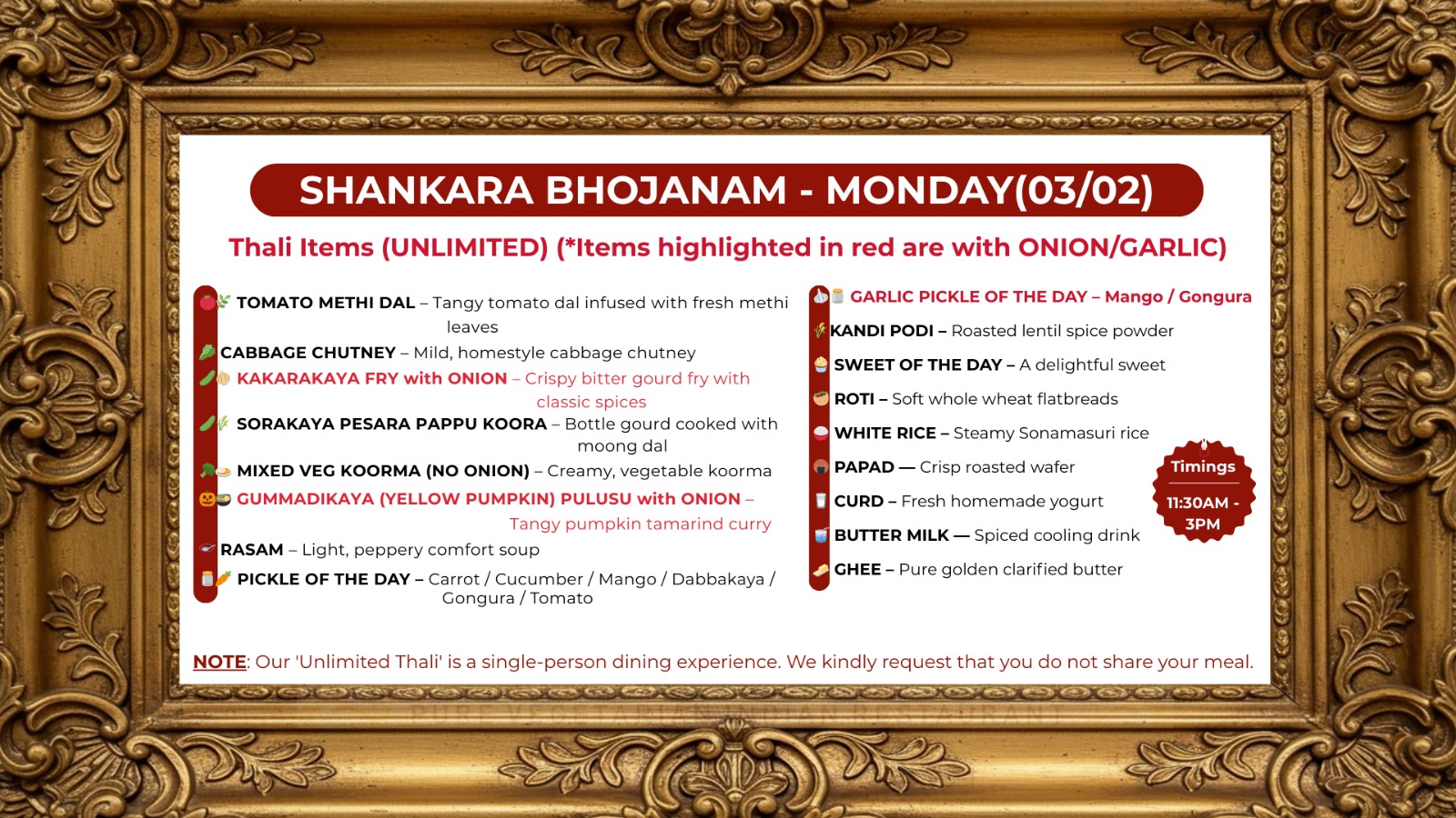 🕒 Timings: 11:30 AM – 3:00 PM