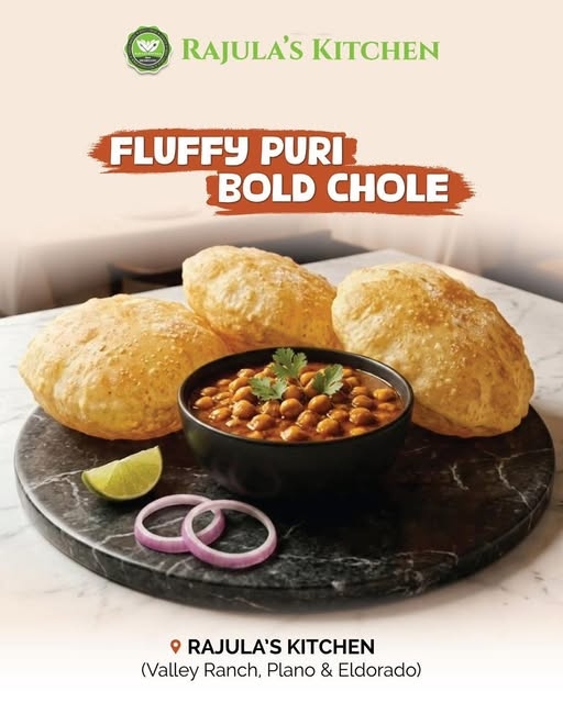 Indulge in the irresistible flavors of Fluffy Puri with Bold Chole at Rajula's Kitchen, where authentic Indian taste meets homemade goodness.