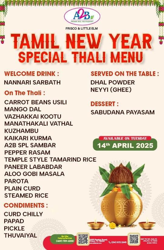 A2B Tamil New Year Special Thali Menu - Celebrate Puthandu with Authentic Tamil Feast