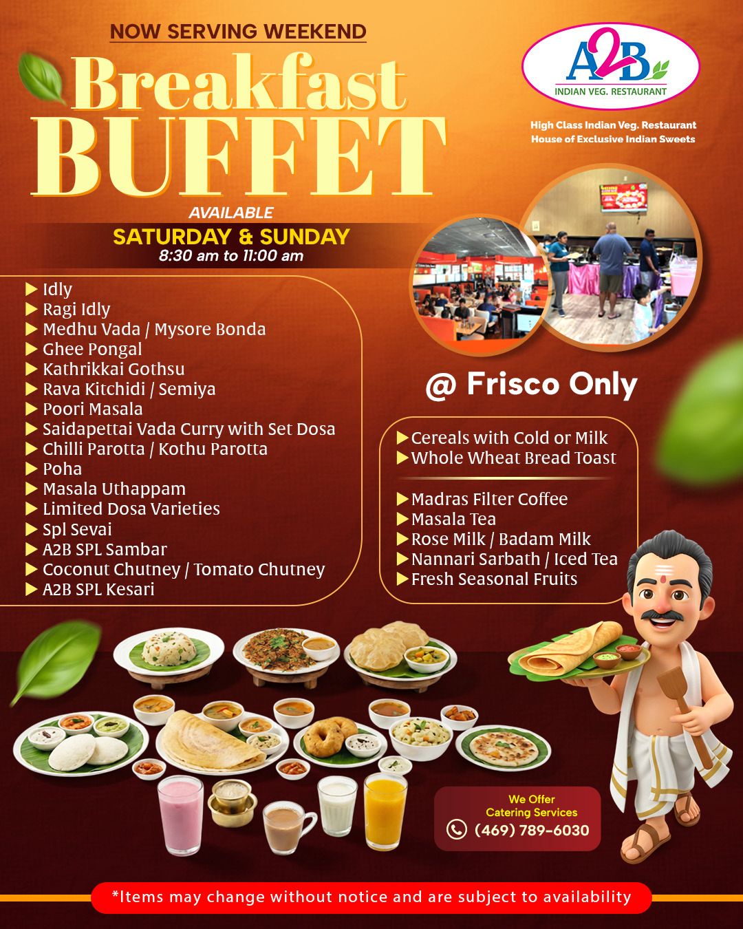 A2B Indian Veg Restaurant – Weekend Breakfast Buffet in Frisco | Authentic South Indian Flavors