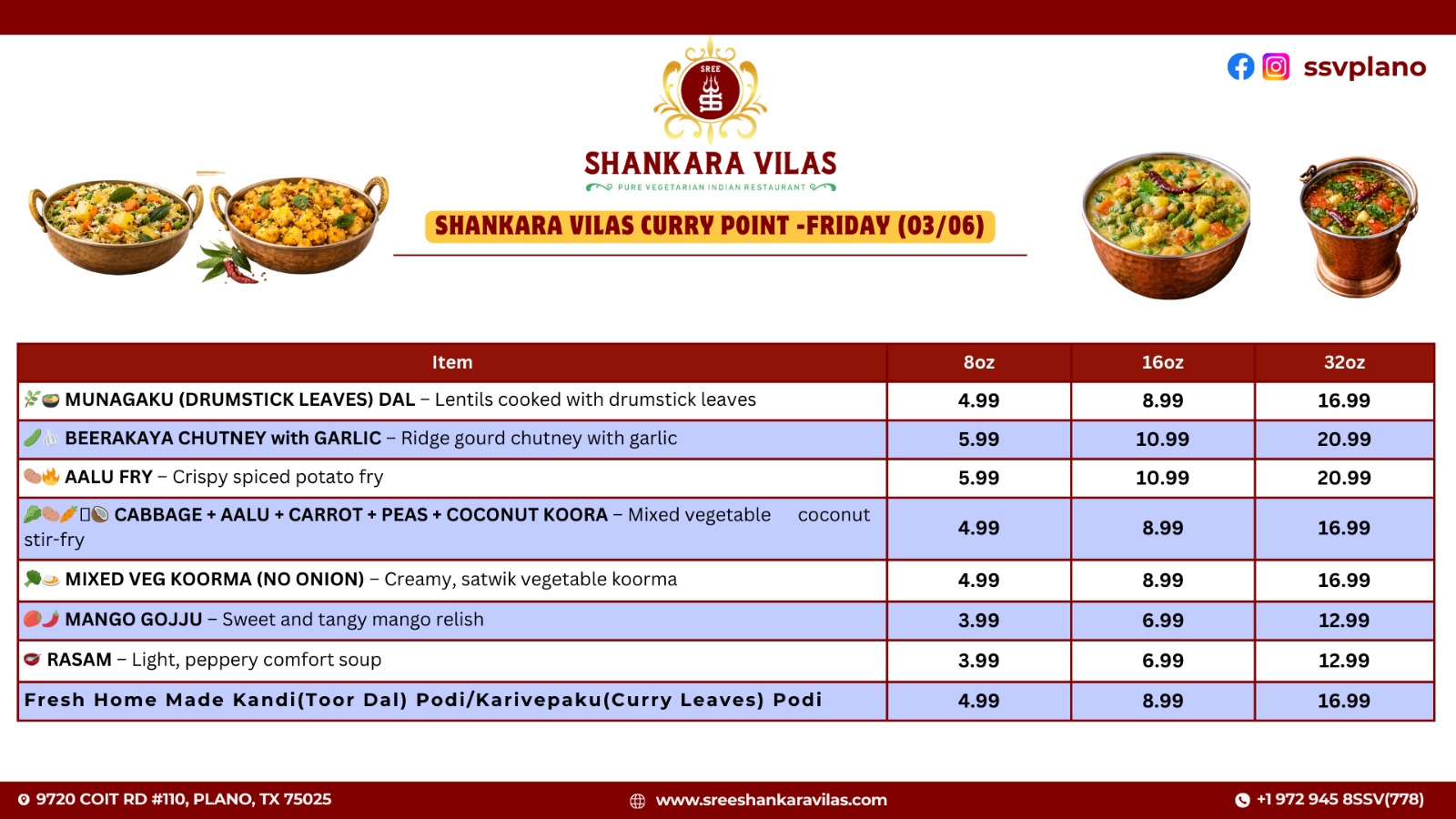 Shankara Vilas Friday Curry Point Specials – Authentic South Indian Vegetarian Curries in Plano