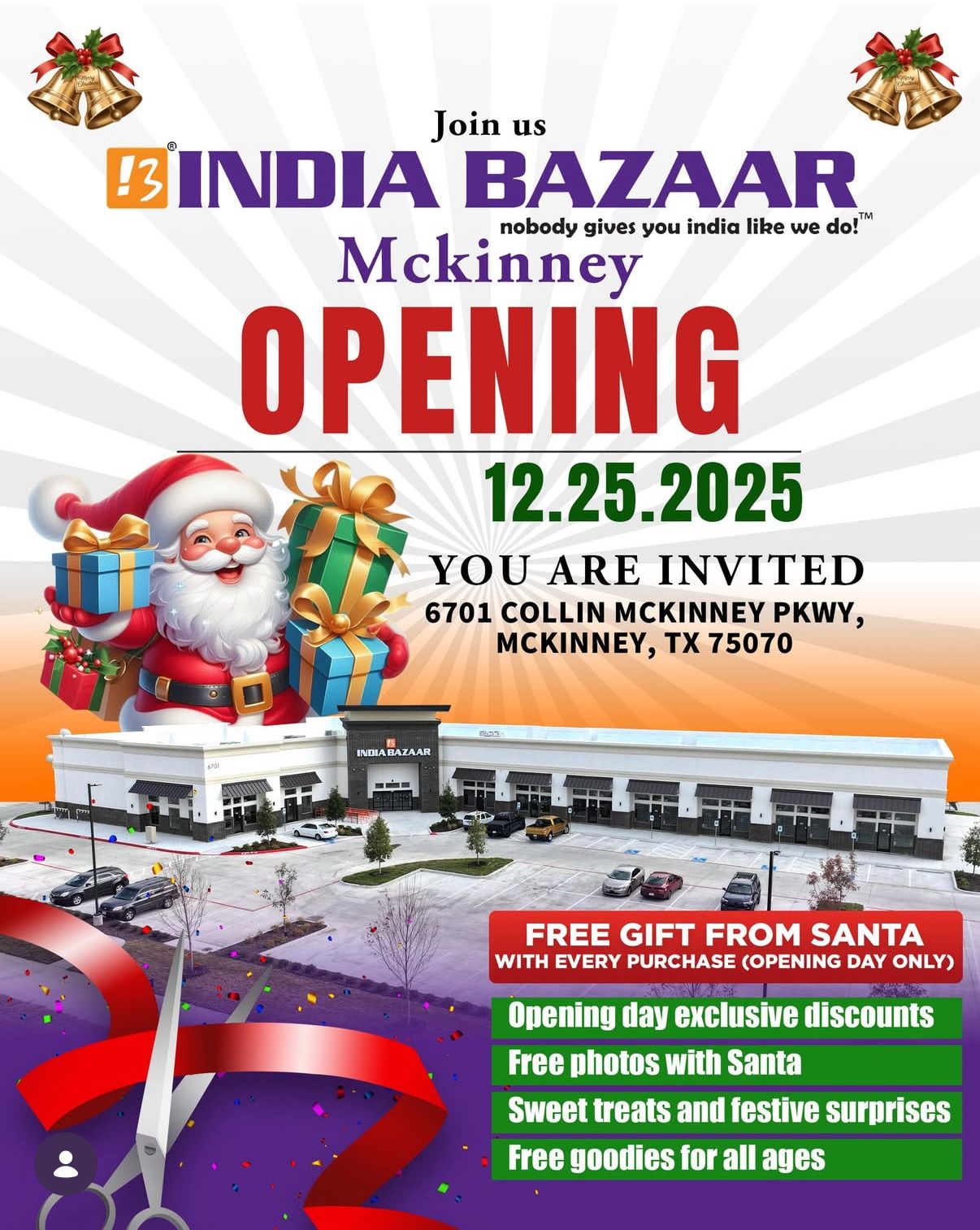 India Bazaar is excited to announce the grand opening of its new store in McKinney, Texas, bringing an authentic Indian shopping experience to the local community. The grand opening celebration will take place on December 25, 2025, and everyone is invited to join the festivities.