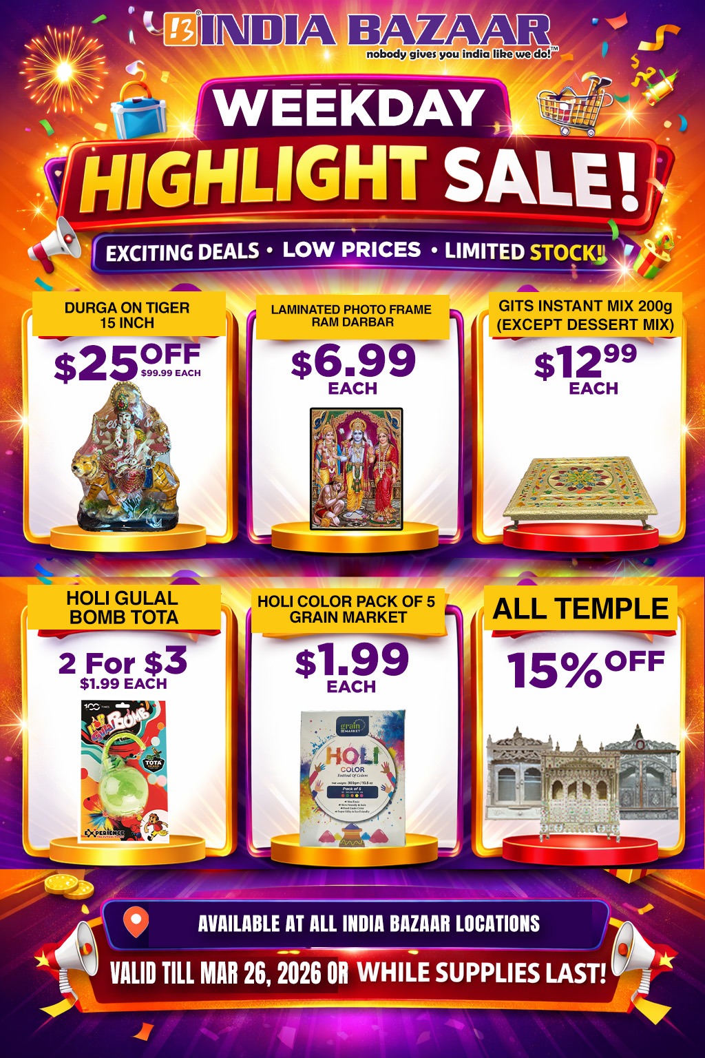 ✨ Don’t miss out on these incredible weekday savings—visit your nearest India Bazaar store today and make the most of these festive deals!