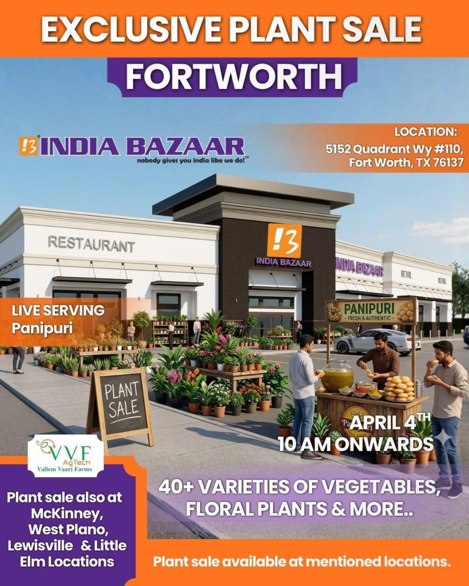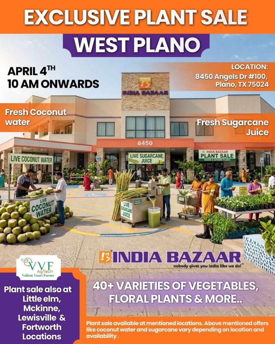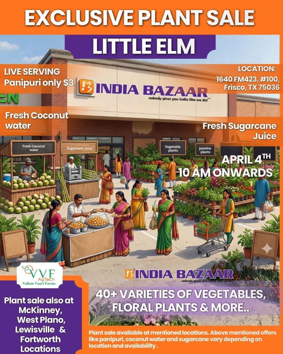 Join us on Saturday, April 4th, 2026, at Vallem Vaari Farms for a spectacular sale of vegetable seedlings and ornamental plants. Perfect for gardening enthusiasts in the Dallas area, we’re offering an extensive range of plants including Indian marigolds, gourd varieties, jasmine, and more. Whether you're looking to spruce up your garden with beautiful flowers or grow fresh vegetables, we’ve got you covered!