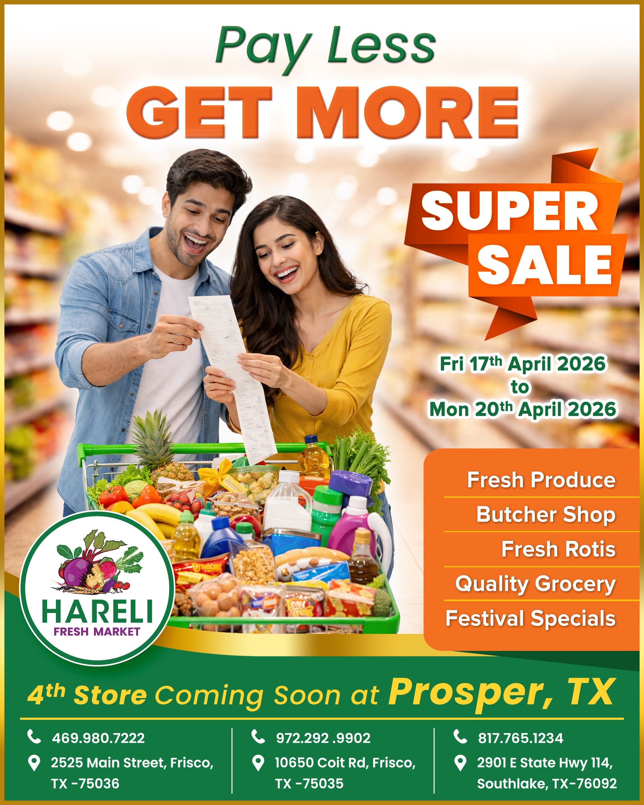 Hareli Fresh Market is hosting a Super Sale from April 17th to April 20th, 2026 with amazing deals on everything you need for your home and kitchen! Don’t miss out on this opportunity to stock up on fresh produce, butcher shop items, fresh rotis, and quality groceries at unbeatable prices.