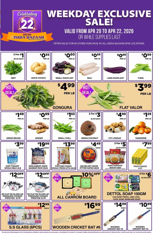 India Bazaar Weekday Exclusive Sale: Fresh Produce, Groceries & Hot Deals in DFW