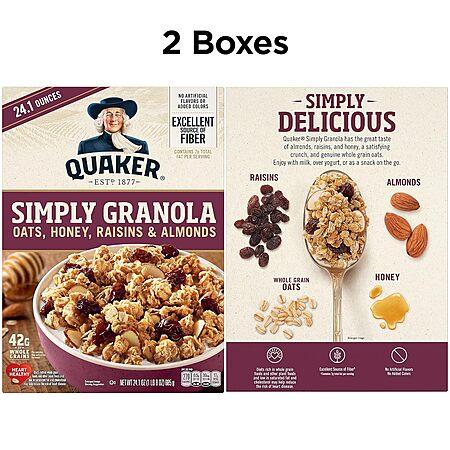 Amazon has 2-Pack 24.1-Oz Quaker Simply Granola Breakfast Cereal (2 Flavors) for $9.96 - $0.50 (5% off with Subscribe & Save) - $2.49 (25% when you 'clip' product page