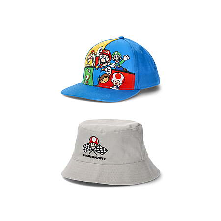 "2-Piece Mario Boys' Hats – Adjustable Snapback & Mario Kart Reversible Bucket for $7.37 ($3.69 each) + Free Shipping with Walmart+"