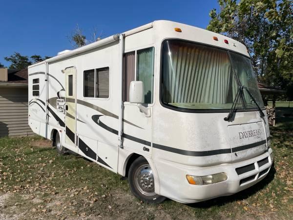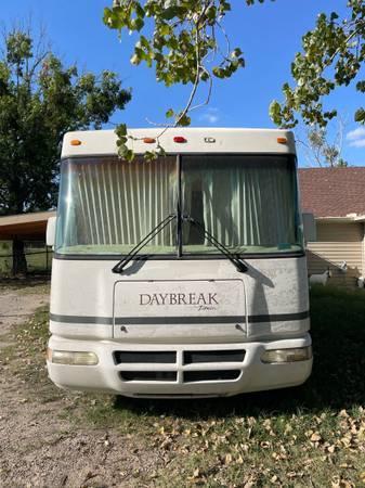 This is a nice 2003 Daybreaker motorhome. Extremely low miles and everything on this thing works except for the in dash air conditioner. Overhead works great running down the road so I never fixed it. Clean and no leaks. New plastic and roof sealer on top. Chevrolet Vortec chassis with a 454. Less than 37k miles so it has a long life ahead of it. Clear coat is peeling but the more that comes off the better it looks. Come take a look. Asking 18k OBO. If your serious about it come look. Clear texas title. I don’t need help selling and I will not respond to text asking if it’s still available. Call text or email 940 443 2863. Located in Gainesville texas. Sorry No speak Spanish