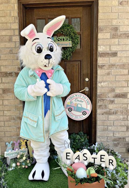 Easter Bunny Costume gift baskets easter eggs, scavenger hunt bounce houses cotton candy popcorn outdoor movie screen