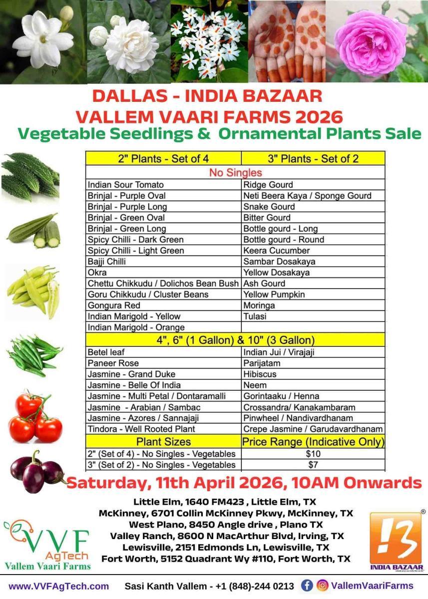 India Bazaar: Vallem Vaari Farms 2026 Plant Sale in Dallas – Vegetable Seedlings & Ornamental Plants