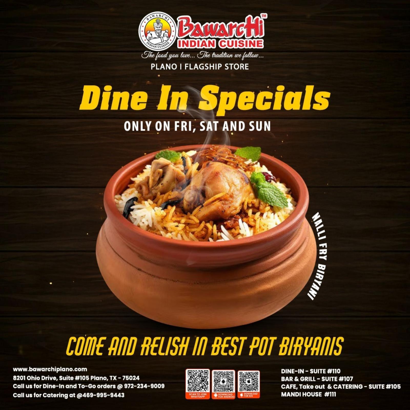 Dine-In Specials – Relish the Best Pot Biryanis at Bawarchi Plano! 🍛🔥