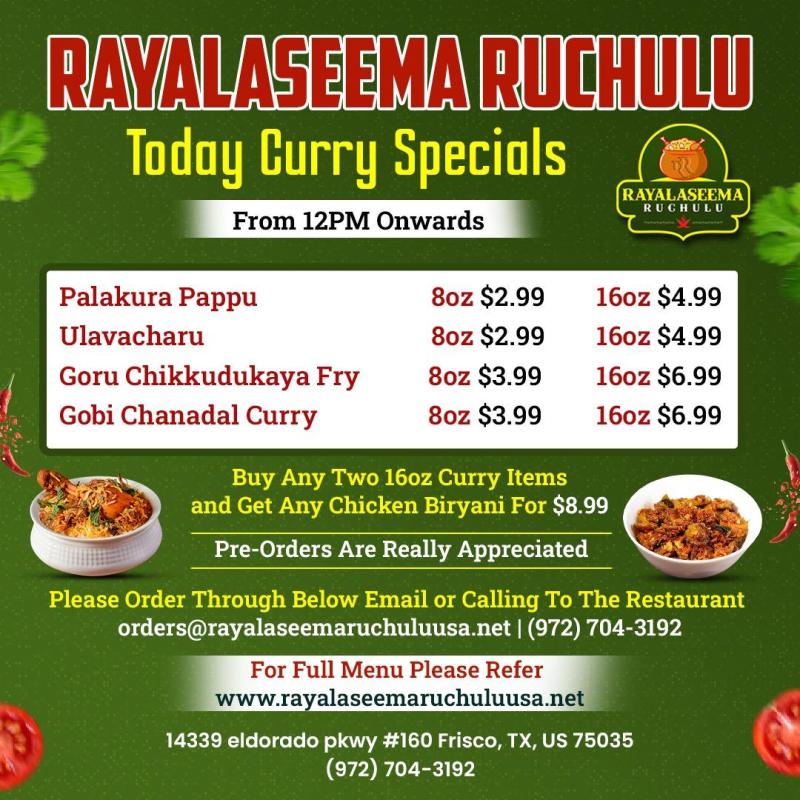 Rayalaseema Ruchulu -Today's Curry Specials