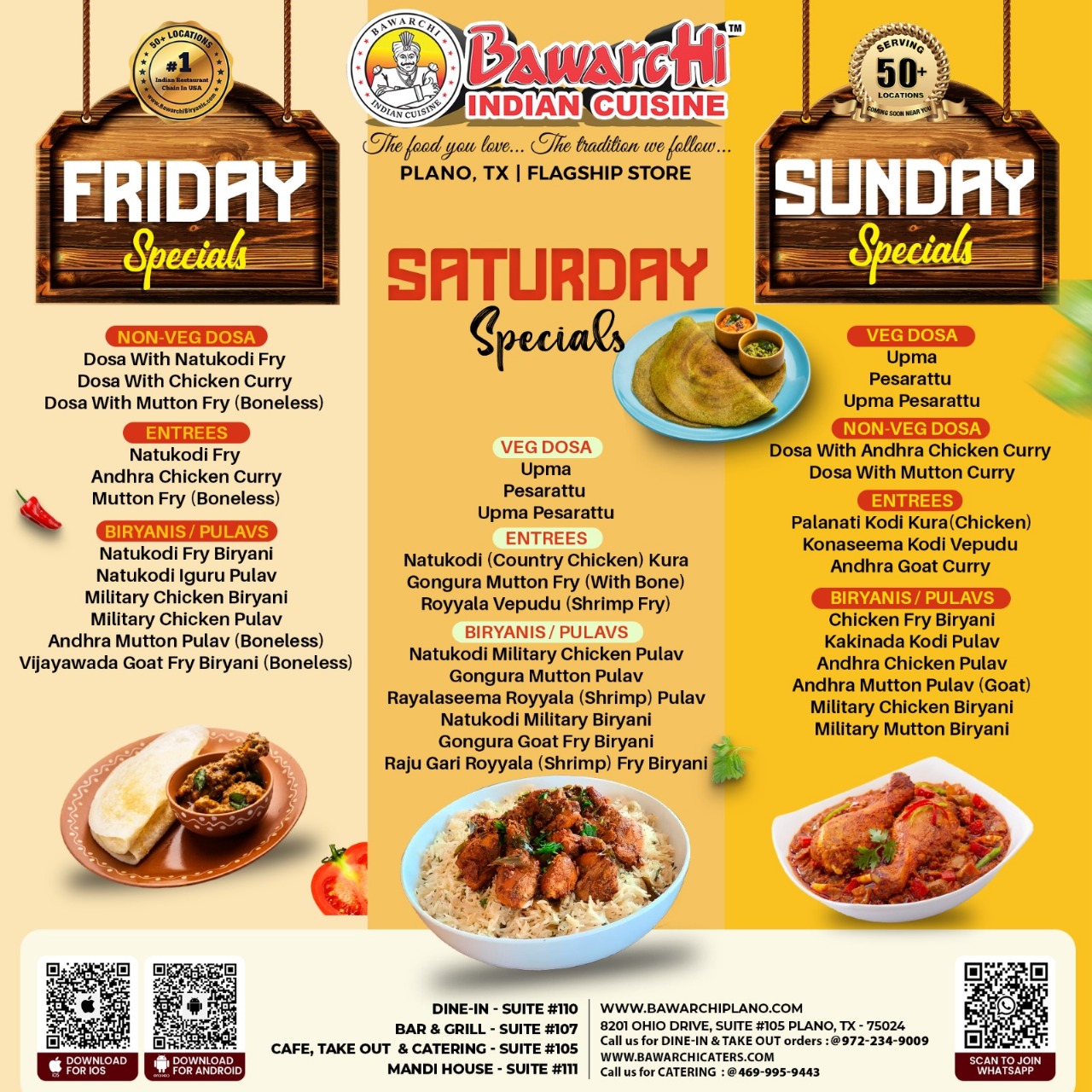 Bawarchi Indian Cuisine Plano – Friday to Sunday South Indian Specials with Dosa & Biryani Delights