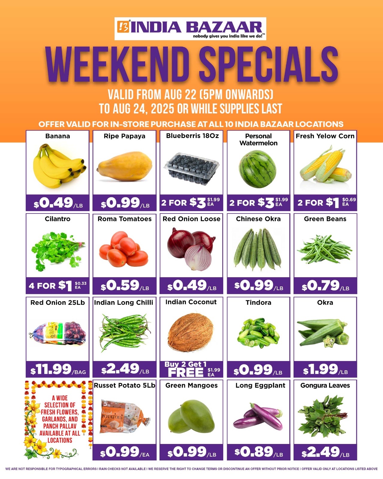 India Bazaar is excited to bring you Weekend Specials from August 22 (5 PM onwards) to August 24, 2025. These offers are available at all 10 India Bazaar locations across Texas.