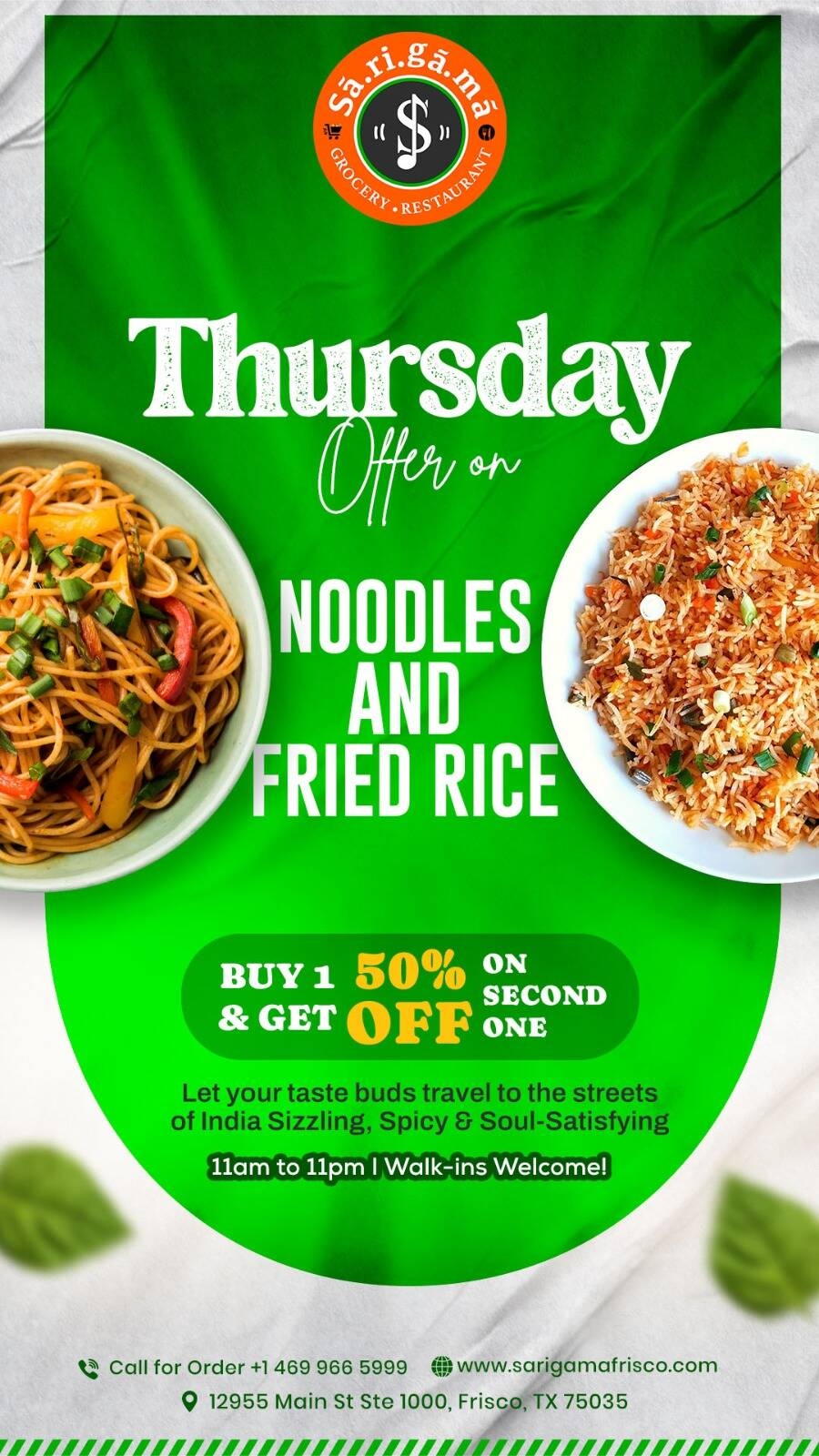Turn your Thursdays into a flavorful feast at Sarigama Frisco with our special Indo-Chinese dining offer. Perfectly cooked, aromatic, and packed with bold spices, this mid-week deal is ideal for lunch breaks, casual dinners, or family outings.