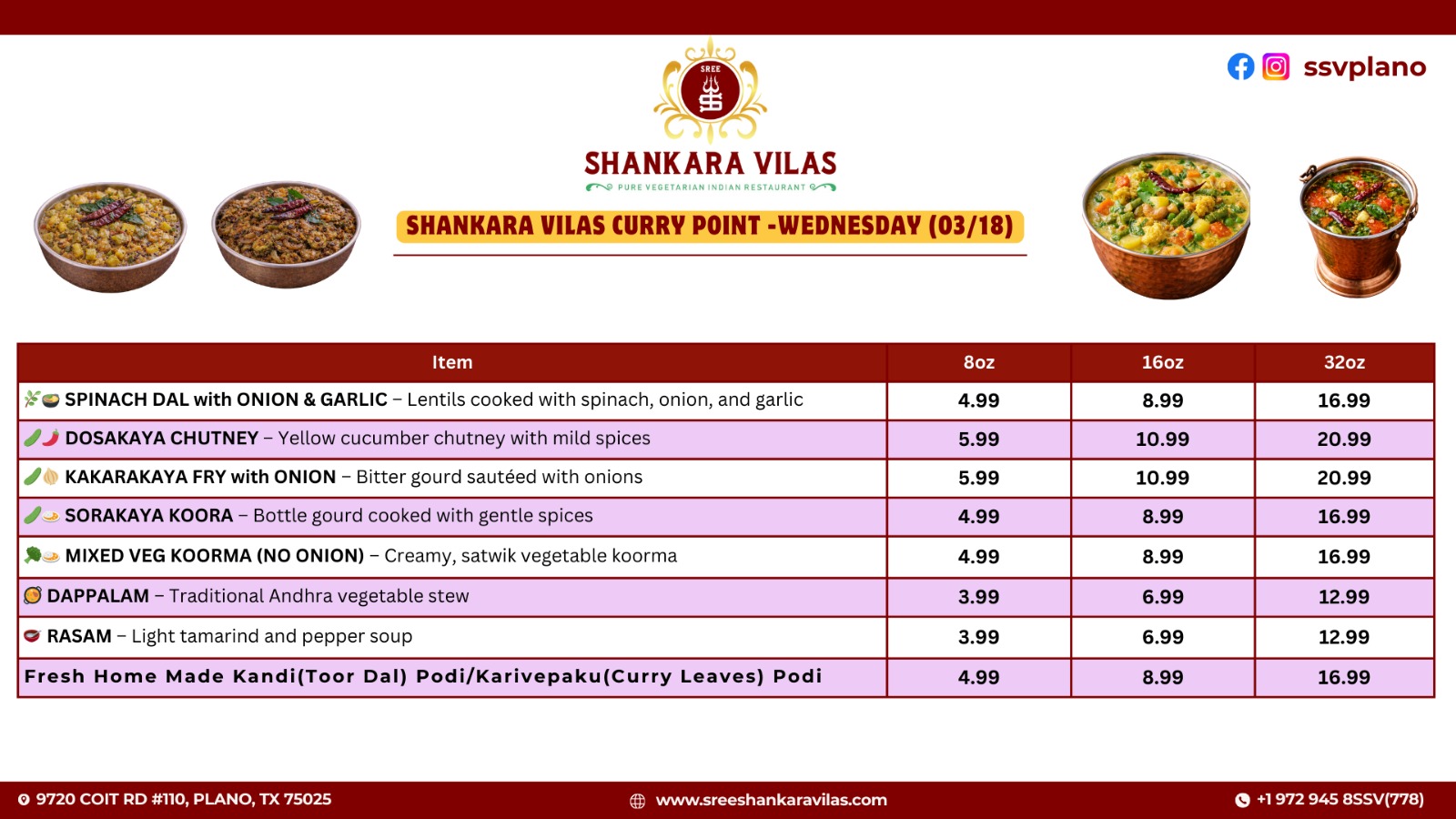 Shankara Vilas Special Curry Point Menu – Enjoy Flavorful Indian Dishes This Wednesday