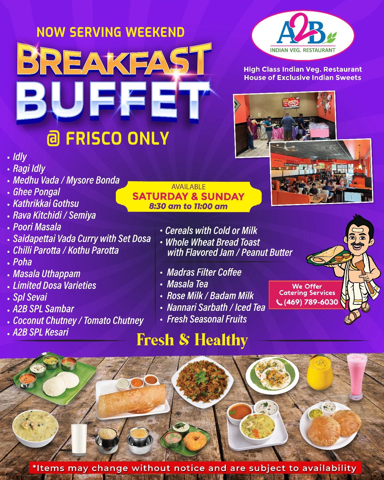 A2B Indian Veg Restaurant – Weekend Breakfast Buffet in Frisco | Fresh & Healthy South Indian Feast