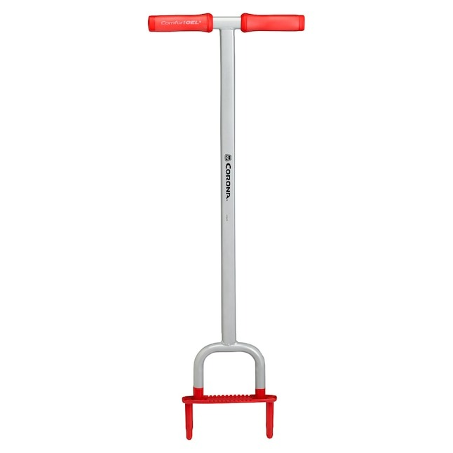 Till, weed and aerate your soil with the Corona YardBREATHER™ lawn and garden aerator. Featuring a slip-resistant heat-treated steel footplate, traction grooves and spikes for safety and stability, this aerating tool is designed for long-lasting durability season after season. Corona’s YardBREATHER™ promotes grass and soil growth by adding water, air and nutrients to the soil. This lawn aerator also features ComfortGEL grips to ensure comfort and control when using the tool. Use Corona’s YardBREATHER™ to keep your lawn and garden happy and healthy. Corona 40-in Composite Core Aerator | LG 3604