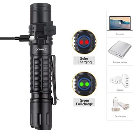 Flashlight body: Aerospace grade 6061 grade aluminum alloy, CNC manufactured to hard-anodized to military grade specification type III, anti-abrasive finish to get solid built body, anti-crash geometry and better heat exchange.