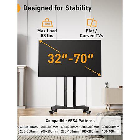 Perlegear Rolling TV Stand for 32-70" TVs with 15° Tilt - $64.99 + Free Shipping
