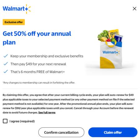 Eligible/Active Walmart+ Accounts Only: Annual Plan Renewal Subscription
