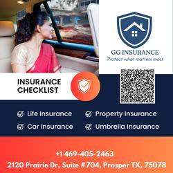 Are you looking for reliable insurance coverage in Prosper, TX? GG Insurance offers a comprehensive insurance checklist designed to protect what matters most. Whether you need Life Insurance, Property Insurance, Car Insurance, or Umbrella Insurance, we’ve got you covered.